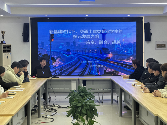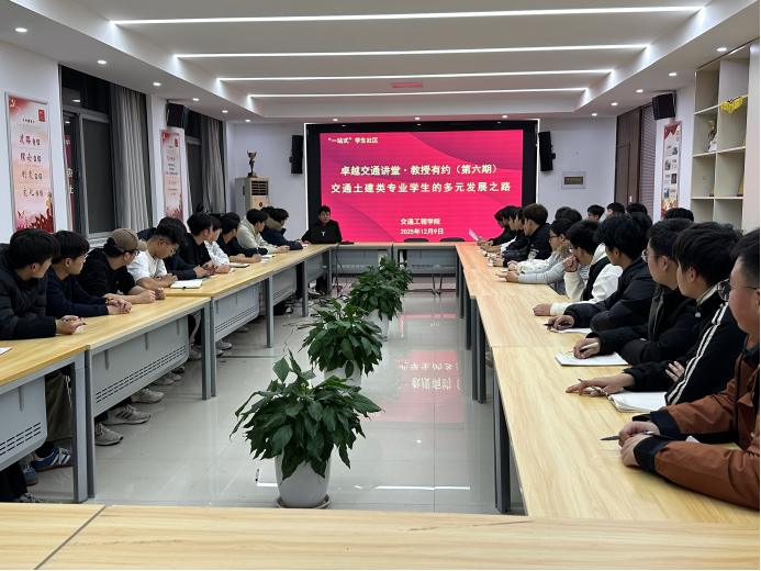 12月9日,交通工程学院在利亚楼B313举办“卓越交通讲堂·教授有约”第六期活动。靳会武教授以“新基建时代下交通土建类专业学生的多元发展之路——应变、融合、超越”为题开讲。