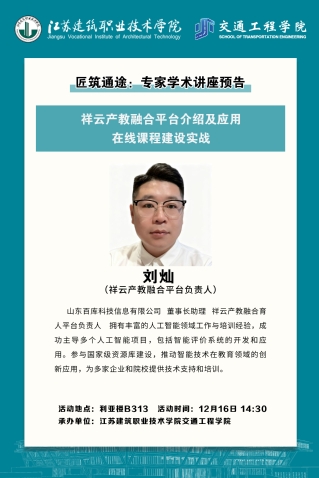 匠筑通途:专家学术讲座预告(祥云产教融合平台介绍及应用、在线课程建设实践)
