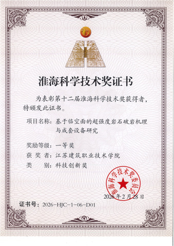 此次项目荣获第十二届淮海科学技术创新奖一等奖,既是对校企协同创新成果的高度肯定,更是对我院产教深度融合、混编团队建设模式的有力检验。淮海科学技术奖作为国内第一个跨省级行政区域的综合类科技奖项,其奖励规格与部省级科技奖基本相当,该项目的获奖,不仅彰显了我院在岩石破岩技术领域的科研实力,也体现了校企协同创新对区域产业发展的重要支撑作用。未来,我院将以此次获奖为契机,持续深化与行业企业的合作,进一步完善校企双向奔赴机制,推动产教融合向更深层次、更广领域发展,不断优化混编团队建设模式,聚焦产业痛点难点开展联合攻关,培育更多复合型技术人才,产出更多兼具理论价值和应用价值的科研成果,为城市智能建造产业升级、淮海经济区科技创新发展贡献更大力量。