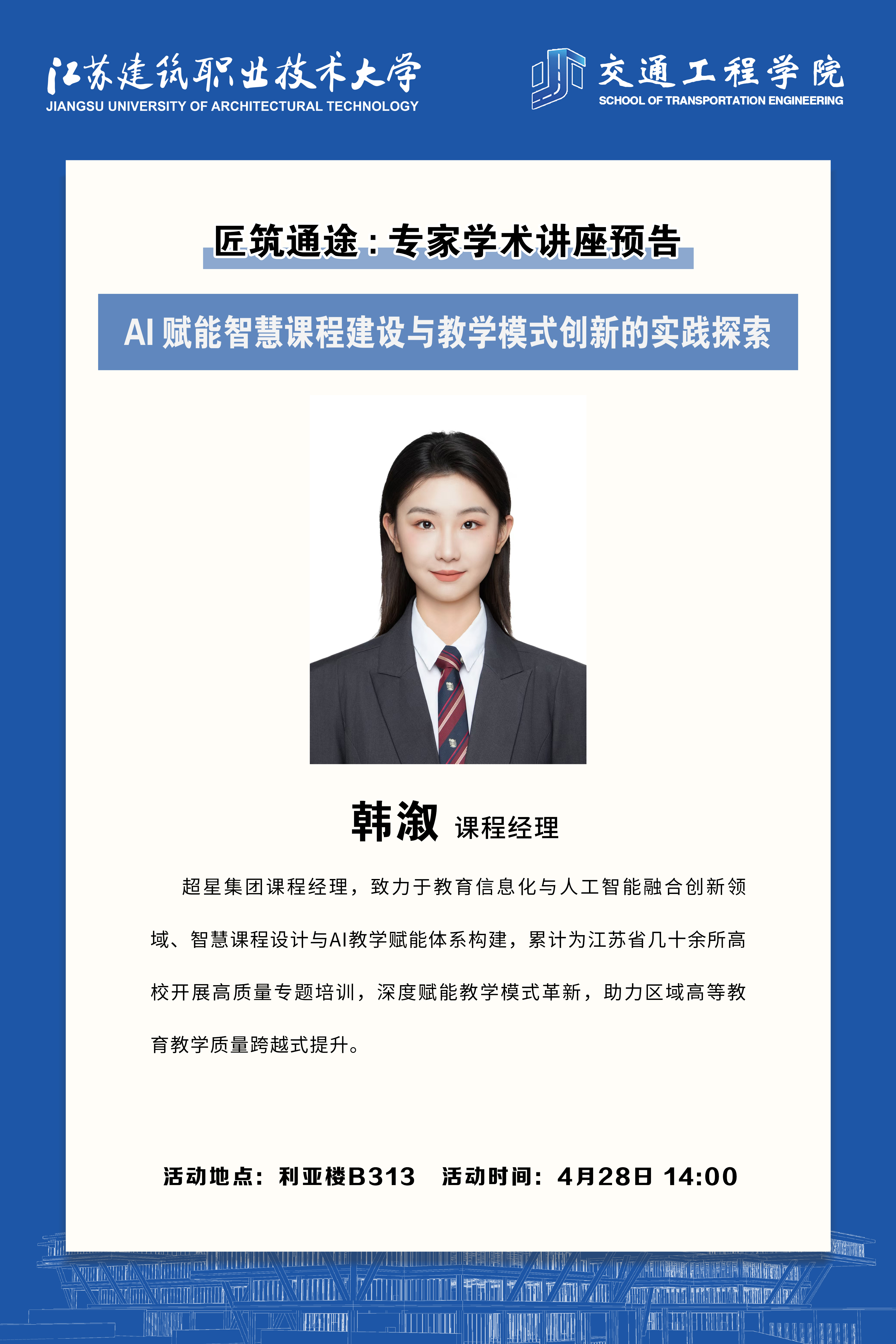 匠筑通途:专家学术讲座预告(AI赋能智慧课程建设与教学模式创新的实践探索)